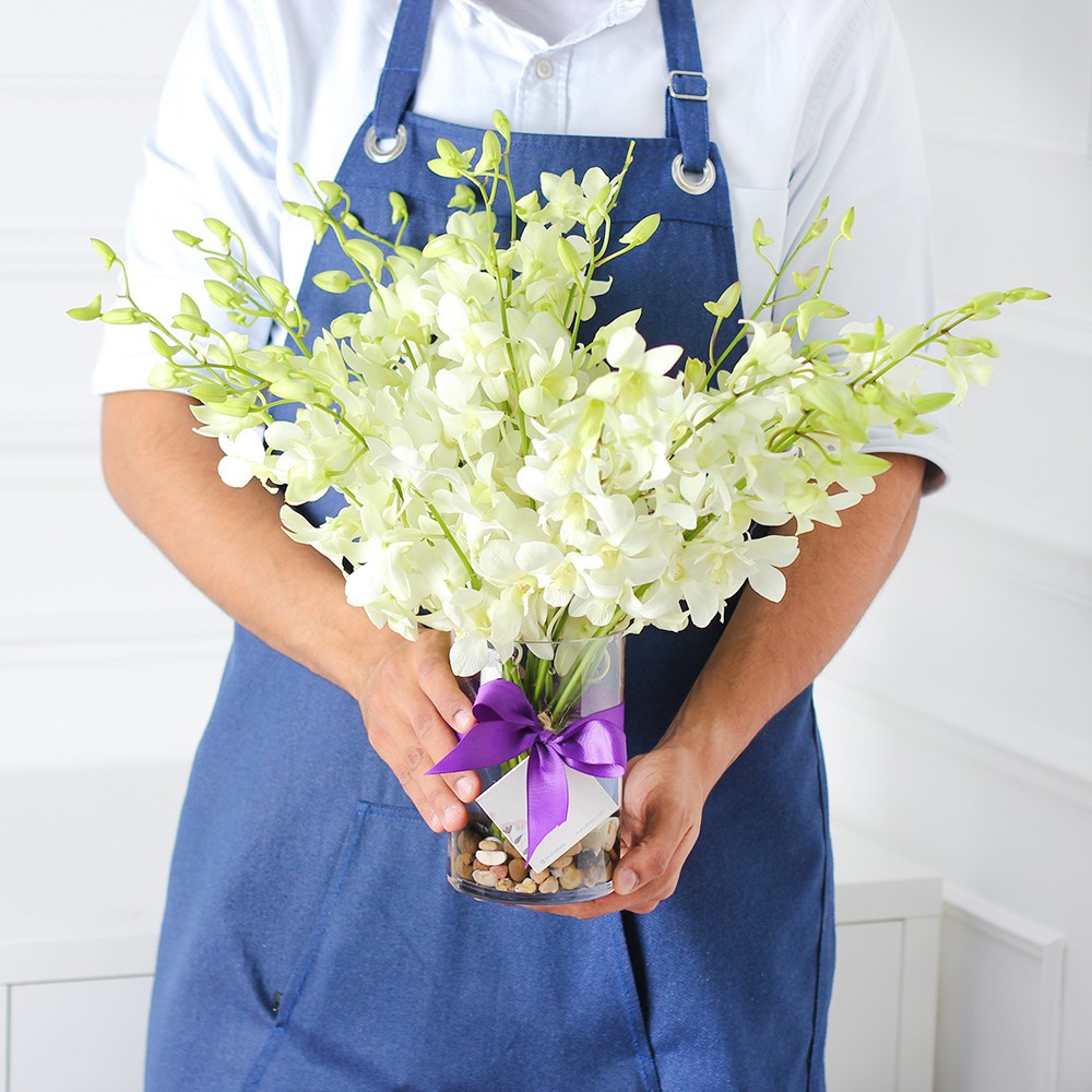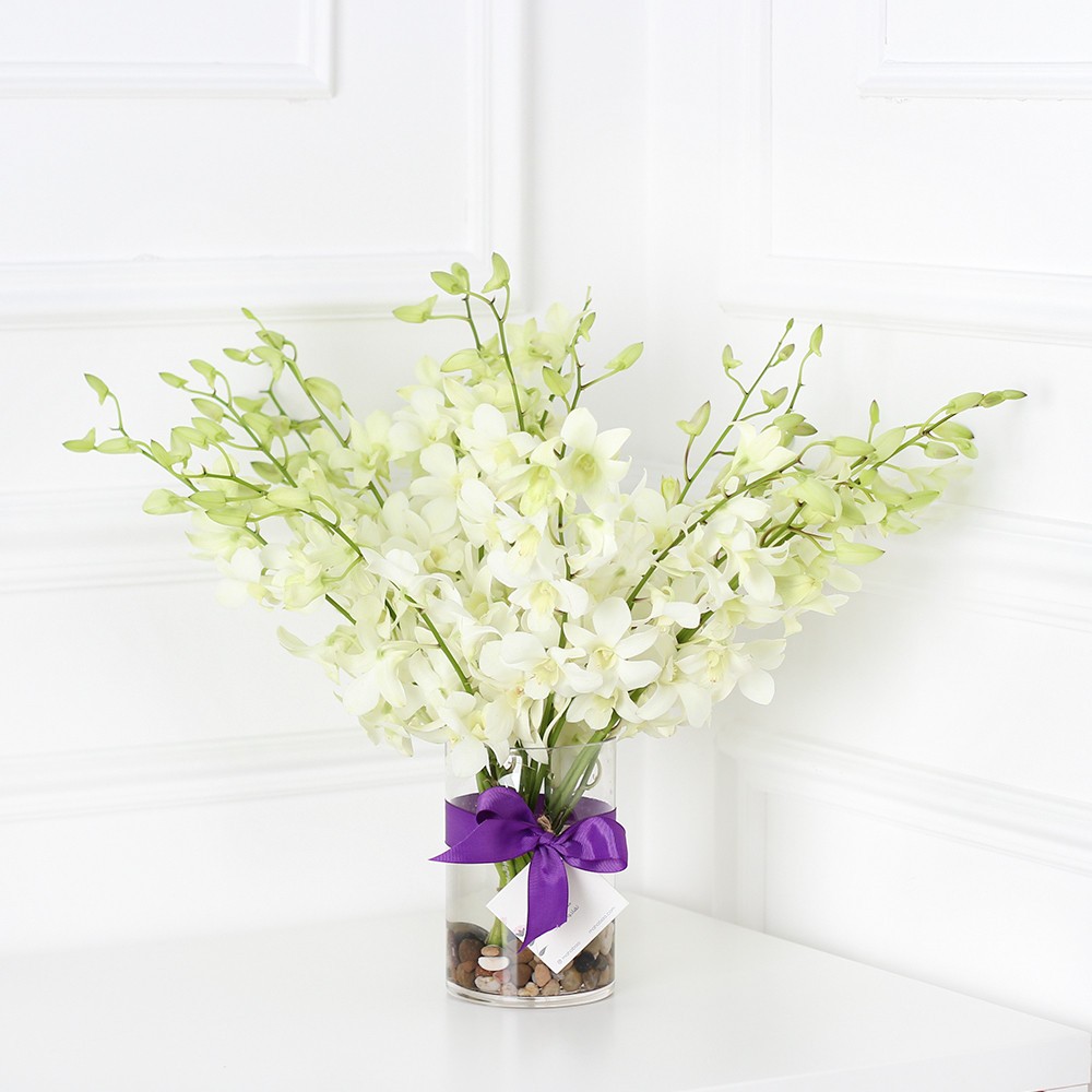فازة مكونة من 20 وردة اوركيد لون ابيض.