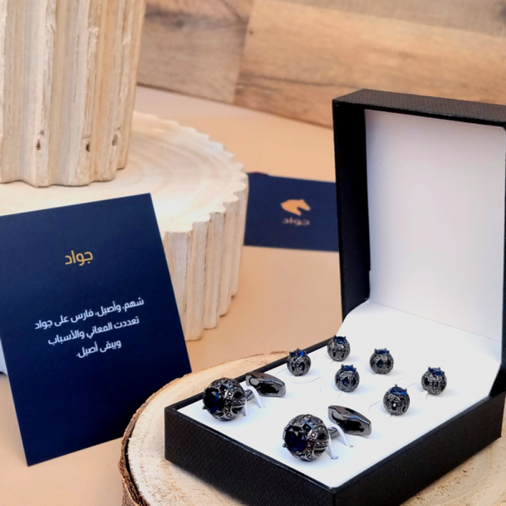 زوج من كبكات الأكمام و6 أزرار تعطي لمسة مكملة الى اناقتك عند ارتدائه مناسبة للبس مع الثوب او القمصان الرسمية